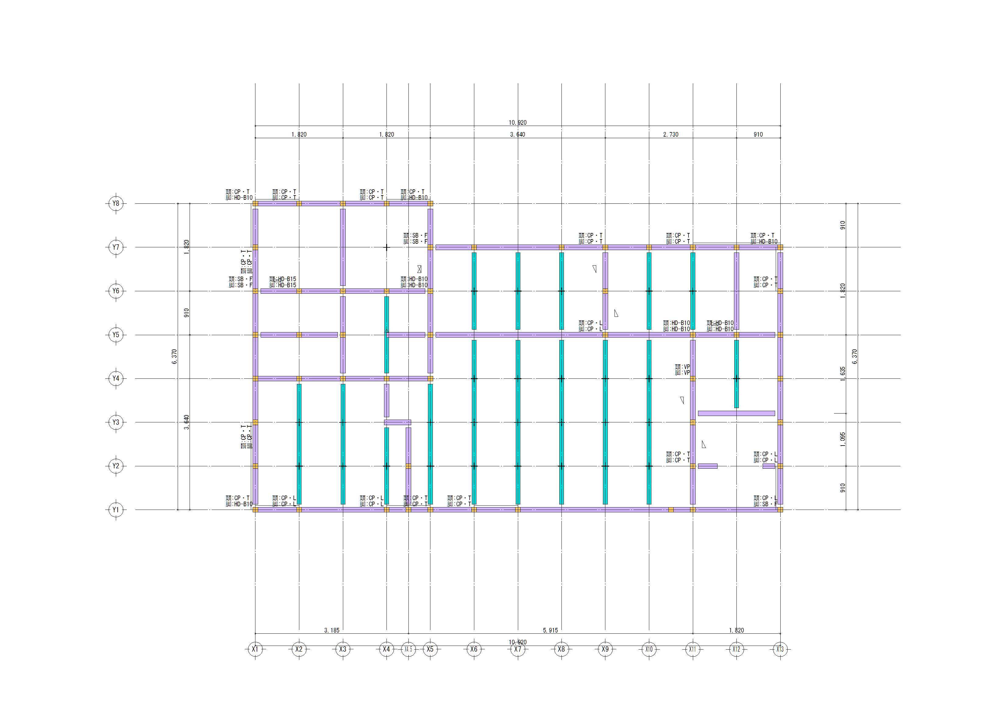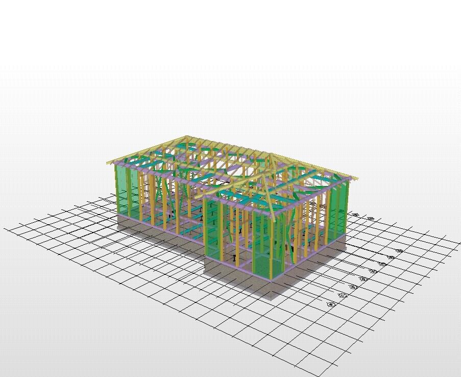 アーキトレンドZEROで作成した在来木造平屋建ての軸組データです。